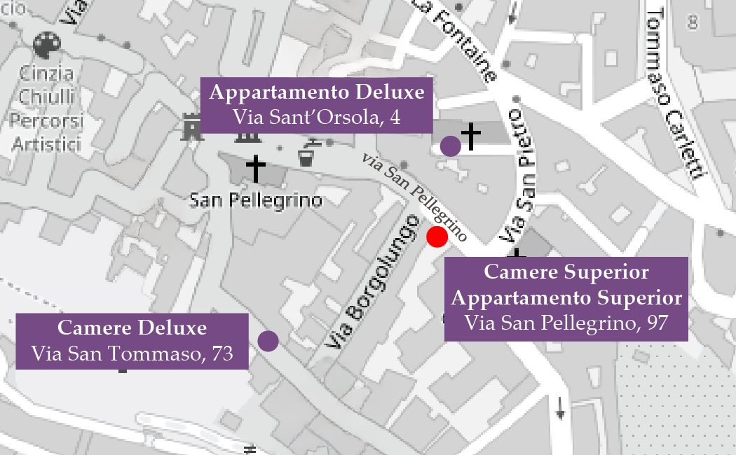 Le nostre locations sono nel cuore del Centro storico di Viterbo, nel cuore del quartiere medievale di San Pellegrino.